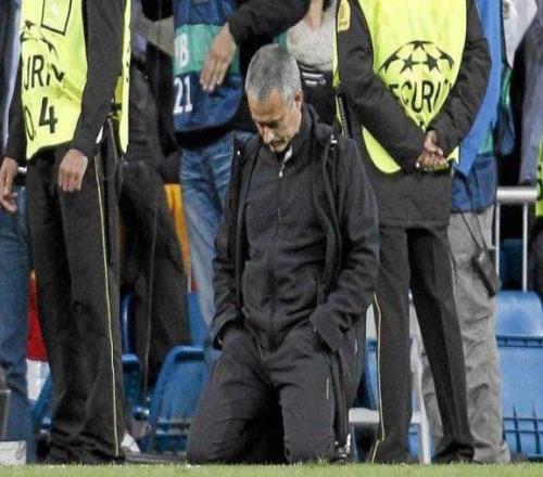 输给拜仁,穆里尼奥和助教抱头痛哭