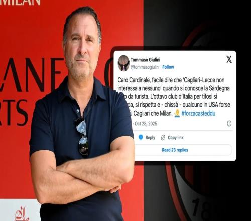 近日,卡利亚里主席驳斥了AC米兰老板最近的言论,表示卡利亚里也有球迷基础,不是他口中的小俱乐部。AC米兰老板、红鸟资本掌门杰里-卡迪纳莱近日做客《The Varsity》播客,再谈意甲