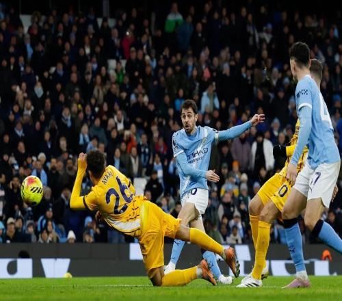英超第21轮的一场较量中,曼城主场1-1战平布莱顿。
